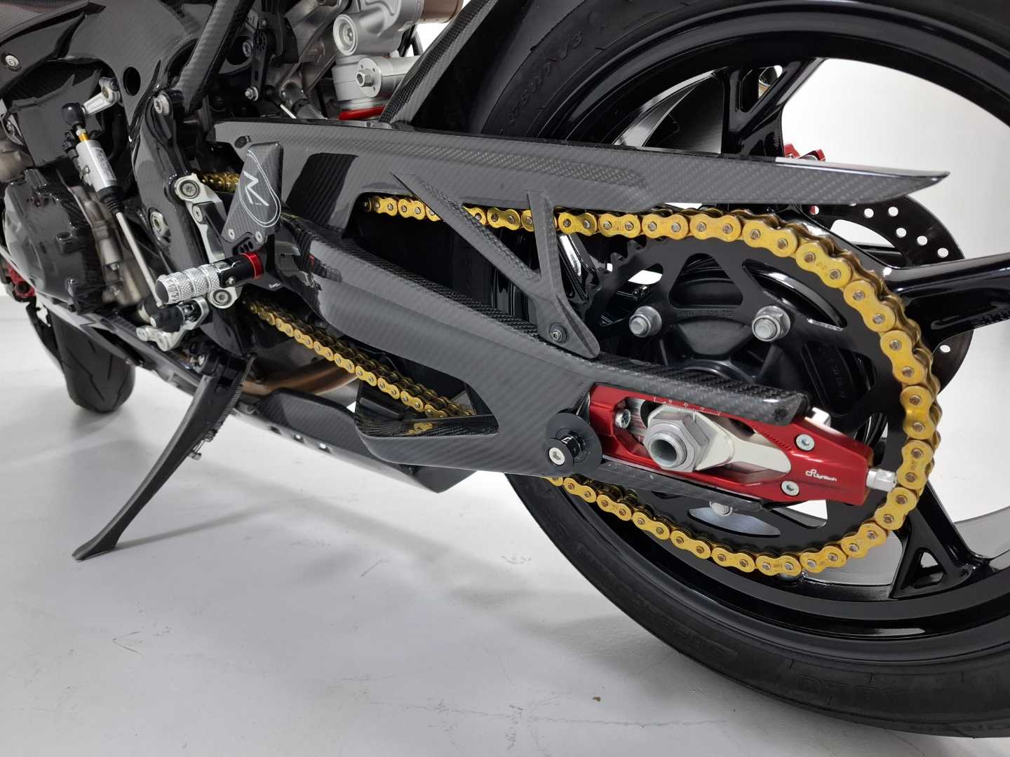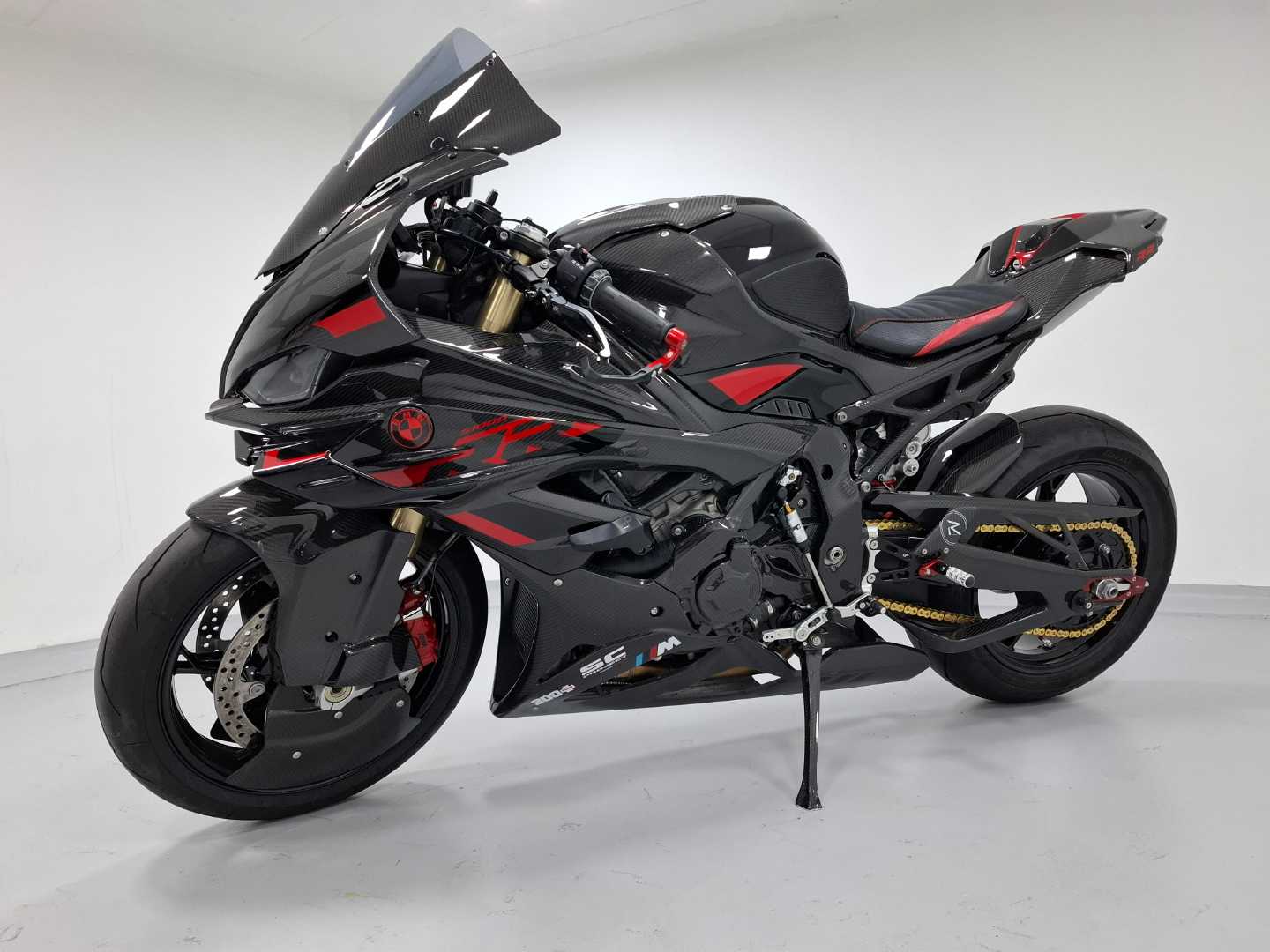 Arrow racing steel collectors S1000RR ,CR-T Silencer, Carbon with mesh on exit, Bike stand support {2 pcs.} , S1000RR '20+ Radiator and oil cooler guard, TST IN-Tail LED Intergrated tail light RR 23, 300 Plus specified paint work, Carbon screen with light smoke, Lightech frame crash protection S1000RR 2023+, Front fender T/G, Rear Hugger T/G, Brace carbon mirror set, SF HP BMW S1000RR 2019+, Carbon screen with light smoke, Clear clutch cover BMW- Cable control, BMW S1000RR '20-'22 fairing cover- set, Bonamici lever set, BMW S1000RR '20-'22 frame cover- set, Seat/ tail – center, FS Carbon sprocket cover, Carbon swing – arm set, FS carbon tank fairing set, Aero wheel cover – set, Fluid reservoir front brake 25ml – carbon gloss, Fairing side panel set, Carbon S1000RR headlight fairing, Undertail cover, "R" Version ADJ. Rear sets, Gilles tooling passenger footpeg cover kit BMW, Paint protection film, Carbon TWM tank cap base, Universal TWM tank fuel insert for TWM caps, The one to get DTLD package, Lightech S1000RR chain adjuster, Chain 525 120 ZVMX2 gold rivet, Carbon side stand